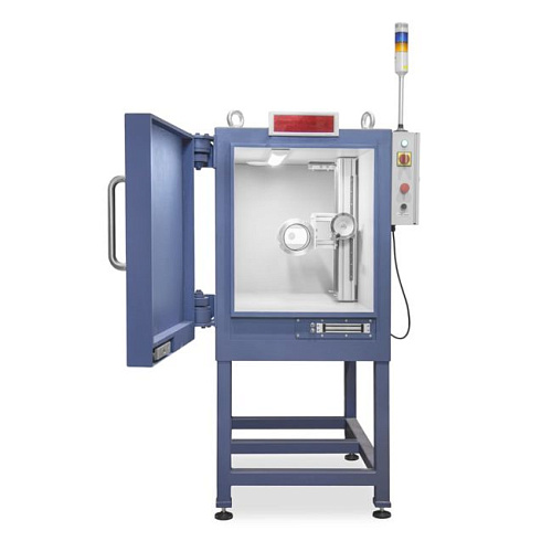 Конструкция защитной камеры выполнена из стали и свинца, имеет одну распашную дверь для позиционирования рентгеновского аппарата на манипуляторе внутри кабины и загрузки объекта контроля.